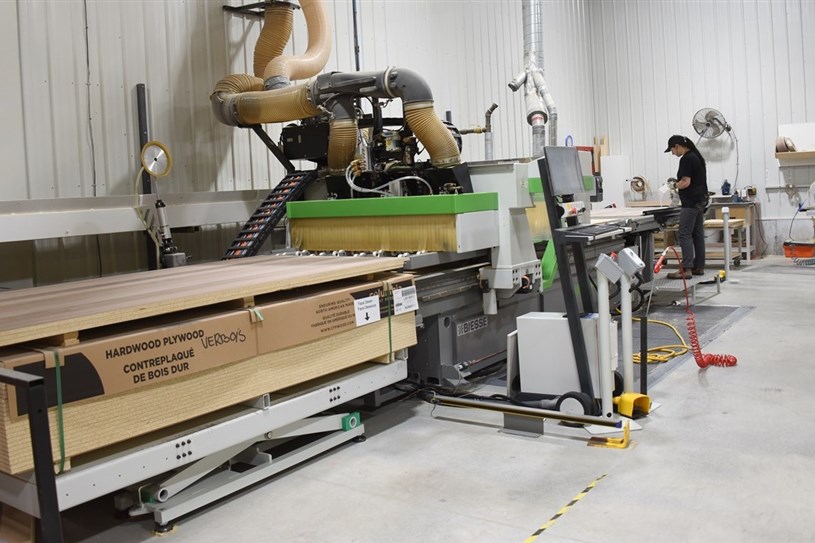 Par cet agrandissement majeur, la capacité de production est considérablement augmentée, souligne M. D’Amours. Grâce à l'équipement robotisé qui effectuent les tâches plus rapidement et efficacement, la réalisation de panneaux de bois est multipliée par cinq.