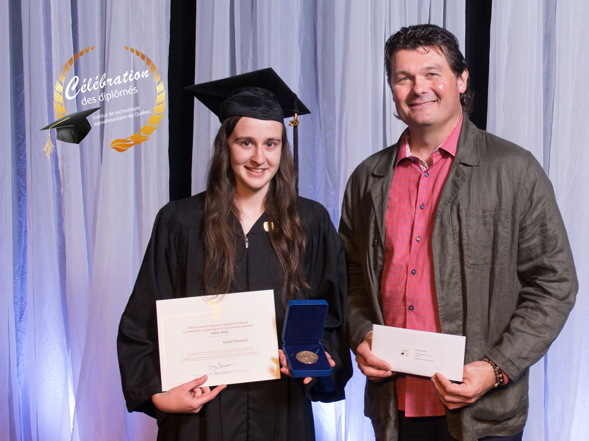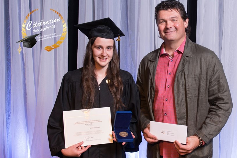 Yanice, finissante en Technologie des productions animales (TPA) est récipiendaire de trois prix. Tout d’abord, Yanice est lauréate de la Médaille académique de la Gouverneure générale du Canada, qui vise à récompenser la finissante ou le finissant ayant obtenu les meilleurs résultats scolaires au terme de ses études parmi les étudiants de son établissement scolaire.
